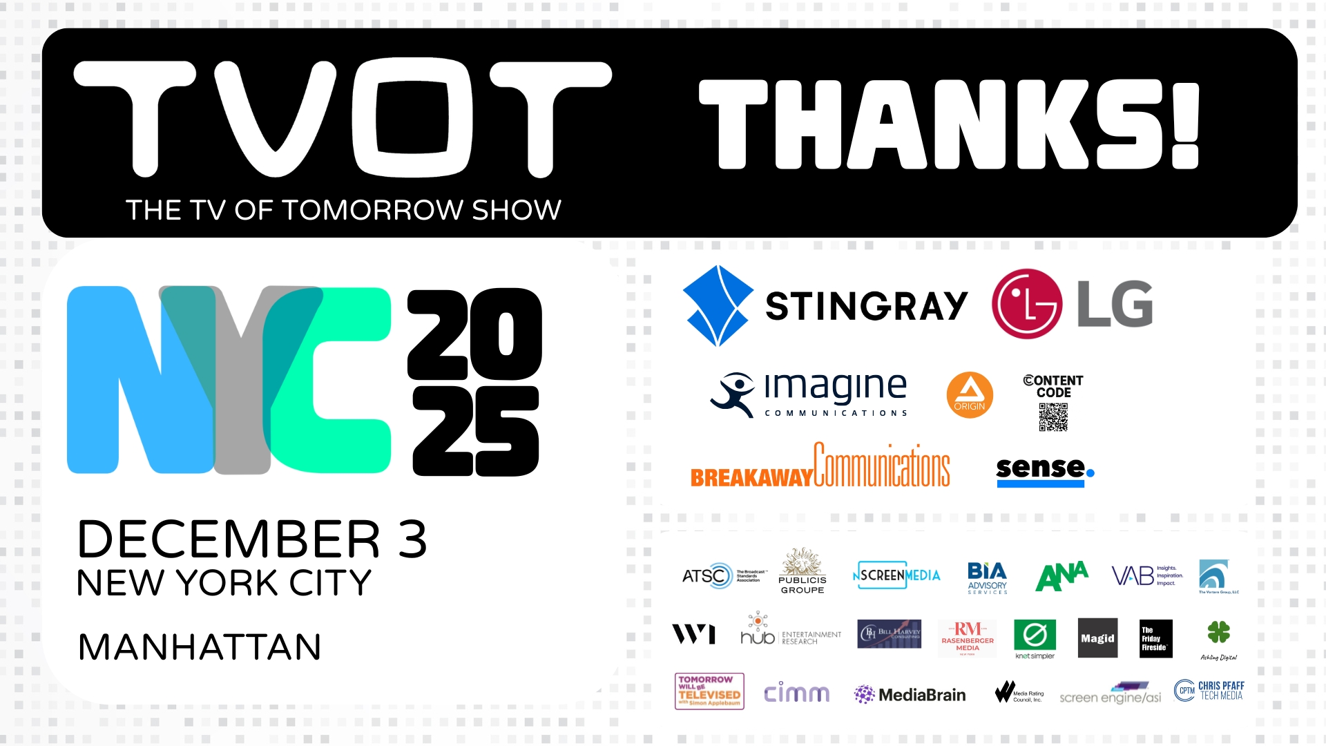 ITVT is pleased to announce the schedule of sessions for the TV of Tomorrow Show, New York 2025 (December 3rd at The Alcove at Hudson Commons, […]